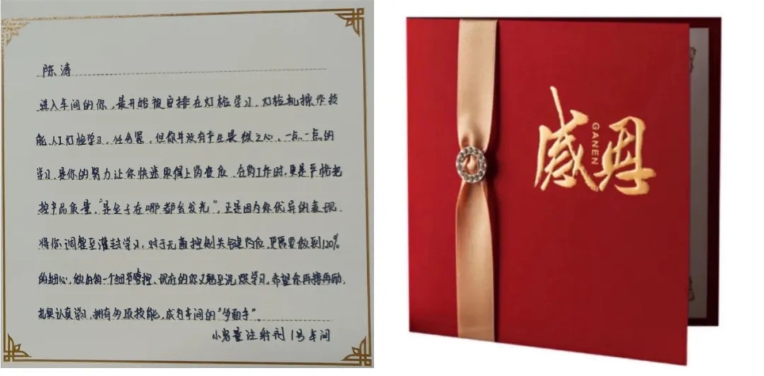 海陵衷心對(duì)他們的付出表示感謝,并為其準(zhǔn)備了感恩卡和禮物,直屬領(lǐng)導(dǎo)“驚喜出現(xiàn)”,將手寫感謝卡和禮物交給他們!