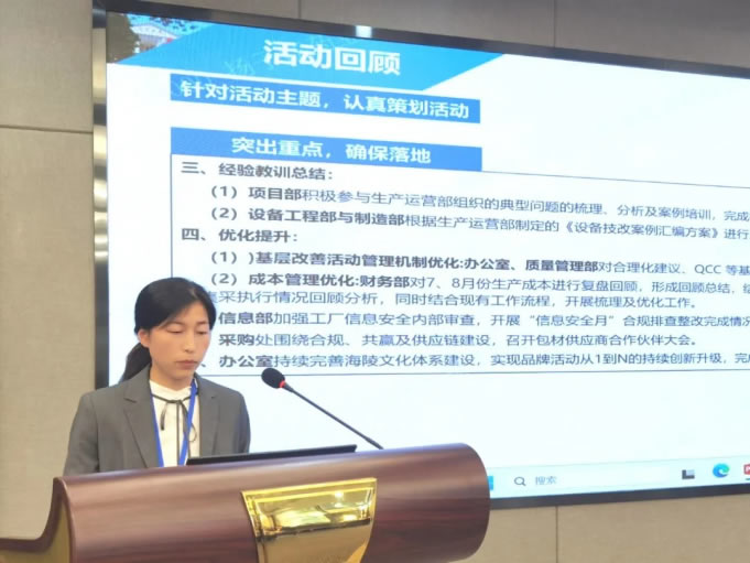 馮部長對第三十六次“質(zhì)量月”活動進行總結(jié)發(fā)言。圍繞本次活動內(nèi)容、不足與改進以及承上啟下內(nèi)容進行展開:1)在總結(jié)中,她通過正反面案例展示活動期間各部門的亮點工作和不足;2)她強調(diào)要強化質(zhì)量月內(nèi)容與標(biāo)準(zhǔn)模板的解讀,保證材料輸出的質(zhì)量;3)最后,她針對質(zhì)量管理部制定的崗位“放心人”選拔方案進行解讀,希望大生產(chǎn)系統(tǒng)各部門能夠選拔更多的放心人,挖掘新生力量,推動企業(yè)不斷成長。