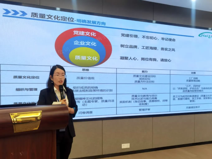 c)質(zhì)量文化推進:李總介紹了海陵企業(yè)文化建設(shè)過程,以2005年GMP體系認證、2012年固體制劑1號車間通過EUGMP認證、2019-2021年完成3個品種現(xiàn)場一致性評價、海陵十四五價值主張確認講述海陵四個階段文化推進的轉(zhuǎn)變。而“質(zhì)惠榜樣”,“工匠海陵”更是薪火相傳的象征。