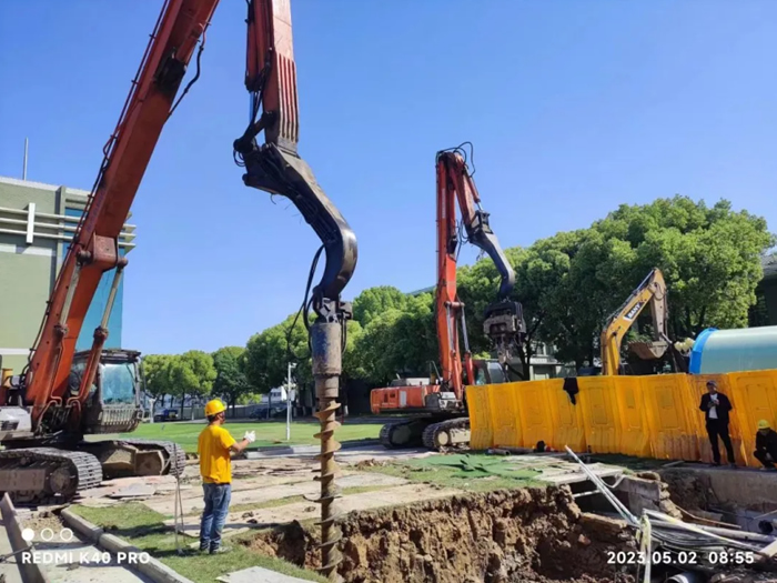 2023年的2月10日,一隊穿著嘉凡市政的施工人員來到了海陵檢測中心,隨著設備的轟鳴聲準備作業(yè)施工。然而此地東側臨河,其水泥平臺為懸挑結構,若是直接開挖,可能會有平臺結構安全風險!