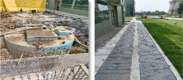 2022年6月,薛永峰開始將自己設想的畫面細化落實,項目正式立項。前期的調研設計工作是項目順利落地的保障。海陵草坪之下,是二十年來“勤懇”運行的暗管、電纜和壓力管道,盡管有圖紙可供參考,但畢竟年份久遠,實際的情況只有現場勘察才能確認。而施工方案的設計既要滿足海陵同步使用同步改造的需求,又需要便于后期對草品美觀度的恢復,使之符合廠區(qū)整體的環(huán)境風格。薛永峰關注著設計圖的每一個細節(jié),并對設計單位提出改進意見。項目進度穩(wěn)步推進。