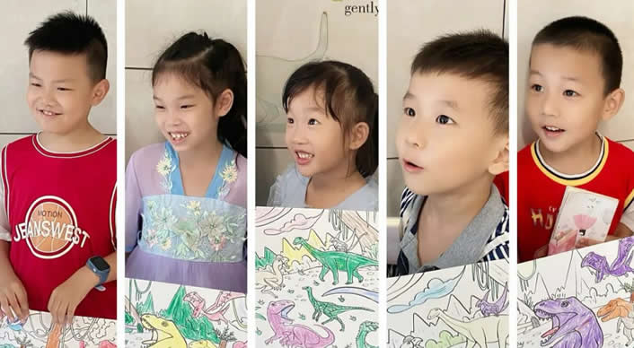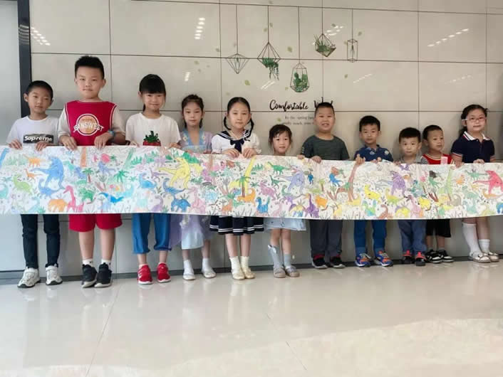 暑托班期間孩子們齊心協(xié)力,合作完成了一幅繪卷《恐龍世界》~在結營儀式上,孩子們展開長卷,共同展示自己的成果,分享自己的感受。