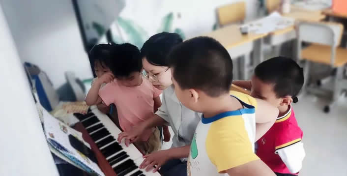 今年活動期間,老師結合孩子們的喜好,開發(fā)了音樂啟蒙系列課程。在一系列歌曲教學和音樂游戲中,孩子們邊玩邊學,逐漸掌握了樂器、音符、音調、節(jié)奏、情緒等基礎樂理知識。