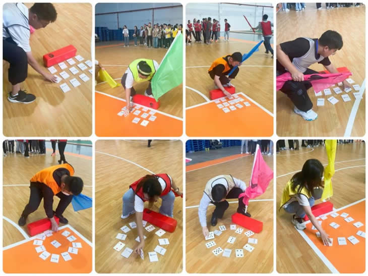 活動正式開始!“超音速”率先成為大家團(tuán)隊(duì)磨合的項(xiàng)目。各隊(duì)成員你來我往,奮力奔跑。起先,大家還沒領(lǐng)悟到比賽訣竅,只是想著自己以最快的速度往返翻牌。隨著賽程推進(jìn),各隊(duì)紛紛意識到溝通的重要性,紛紛形成了以記錄員為圓心的“討論組”。隨著各隊(duì)對牌面分布的逐漸明晰,比賽也進(jìn)入白熱化的“沖刺階段”,并很快角逐出排名!