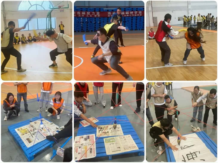 “華山論劍”要求團(tuán)隊(duì)全員共同指揮一人,彼此競爭切磋。隨著戰(zhàn)況的緩和激烈,時(shí)而寂然無聲,時(shí)而人聲鼎沸。勝負(fù)只在一瞬之間,現(xiàn)場隨著精彩的對決而爆發(fā)出陣陣歡呼聲?!肮怖L藍(lán)圖”則要求一人指揮,全員合力達(dá)成目標(biāo)。參與的成員不由自主地屏住呼吸,生怕自己的呼吸擾亂了正在書寫的筆尖?!昂A辍薄罢\實(shí)”“守信”“高效”“扎實(shí)”“硬朗”。每一個(gè)團(tuán)隊(duì)都緩慢而堅(jiān)定地寫下了自己所選擇的詞語。